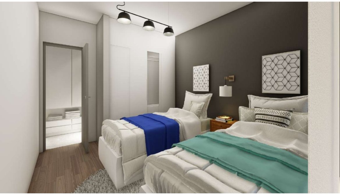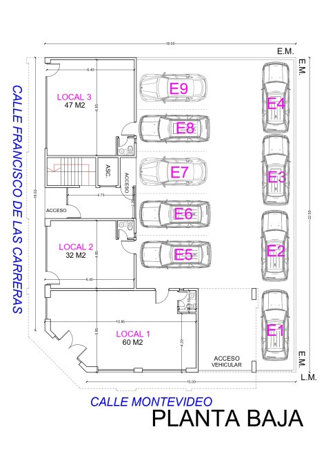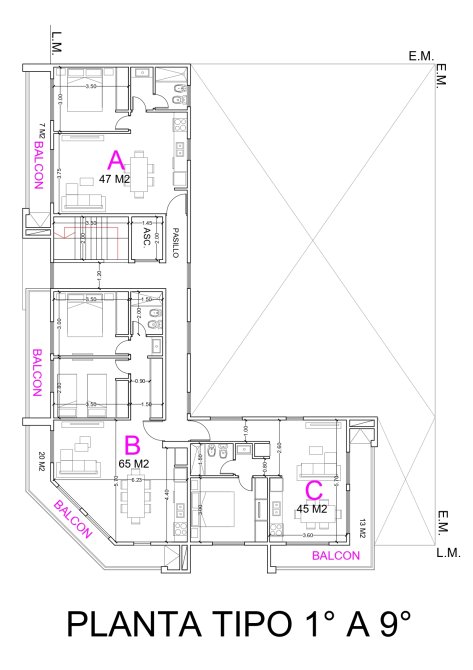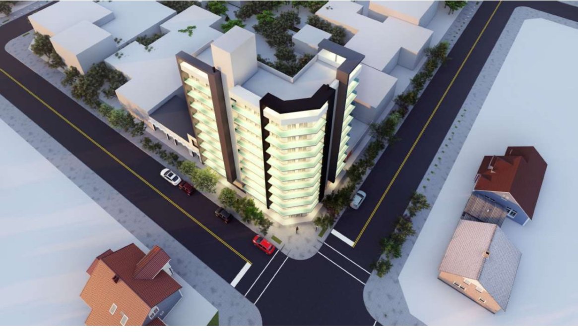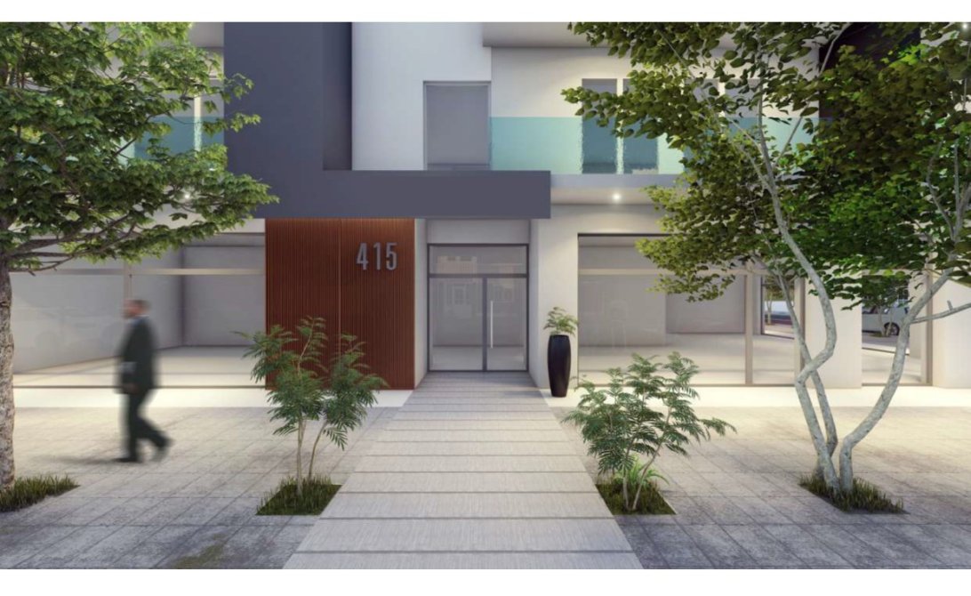 En la esquina se encolumnan departamentos 65 m² de 3 ambientes compuestos de un amplio living, cocina-comedor, dos dormitorios con placares y un baño con antebaño y un balcon hacia ambas calles.