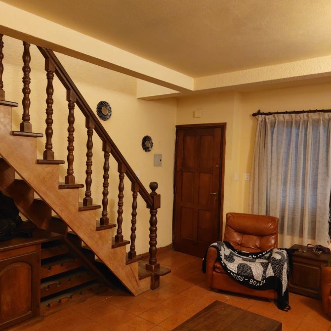 V019 - Duplex calle Sgo. del Estero al 2350 San Bernardo, al frente. Gas natural conectado, 2 dormitorios y 2 baños completos, living muy amplio con estufa, cocina comedor amplio, patio con parrilla y lavadero.Bohardilla que se accede desde dormitorio de atras. Escalera de algarrobo, muebles de algarrobo, terraza balcon a la calle con baranda de algarrobo. Se vende con muebles. Estacionamiento al frente. Rejas, placards, muy estado general. Buen entorno. Consulte!!
